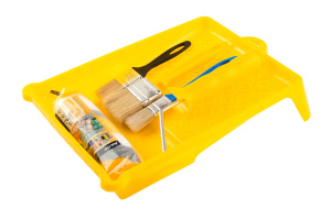 Состав набора: Валик Эксперт Тигр 180, кисть Эксперт 25*8, кисть Евро 35*8, кисть Эксперт 50*12, ванночка 33*26