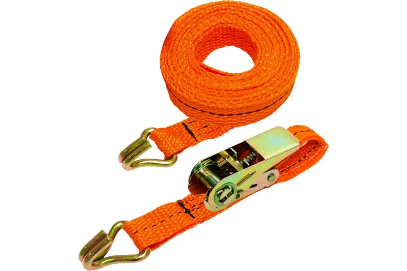 Стяжной ремень с крюками (25мм, 1,2т, 6м оранжевый) СТРОП-ПРО SP02983 используется для крепления грузов.