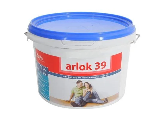 Клей-фиксатор для гибких напольных покрытий ARLOK 39 10 кг 00000003878 предназначен для фиксации ковролина, текстильных, виниловых покрытий на прошпаклёванные полы или на уже имеющиеся напольные покрытия, подвергнутые очистке (н-р: виниловые покрытия, линолеум, керамическая плитка, лакированный паркет или дощатый пол).