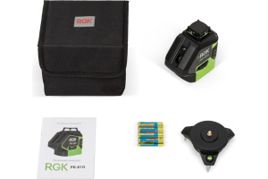 Лазерный построитель плоскостей RGK PR-81G с лазерным лучом зеленого цвета для хорошей видимости при дневном свете.