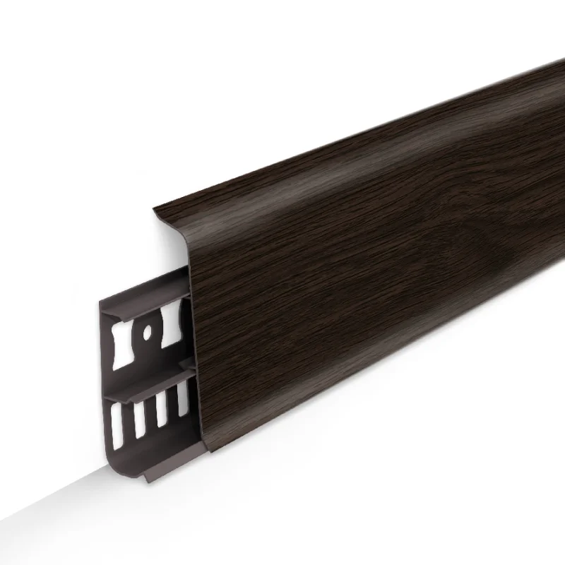 Гибкий резиновый край плинтуса не позволяет влаге и пыли проникать в зазор между стеной и напольным покрытием.