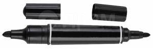 Маркер черный перманентный двусторонний в прочном пластиковом корпусе. Нестираемые светостойкие чернила на спиртовой основе. Предназначены для письма на любой поверхности: бумага, полиэтилен, дерево, стекло, металл, натуральная кожа, ткань, камень, плитка. Форма наконечника: тонкая, круглая.