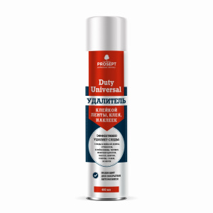 Duty Universal эффективное средство для удаления клейкой ленты, клея, наклеек и других стойких загрязнений. Оно подходит для очистки различных материалов, включая стекло, керамику, фарфор, алюминий, сталь, дерево и ПВХ-плитку. Однако, следует использовать его с осторожностью на ламинате, лакированных и окрашенных поверхностях, так как это может повредить поверхность.