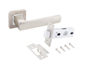 Комплект: ручка на квадратной накладке и защелка без фиксации.Материал ручек — алюминиевый сплав, защелки - сталь. Многослойное гальваническое покрытие. Комплектуются винтовыми стяжками и шурупами. Длина разрезного квадрата - 95мм. Для деревянных дверей, толщиной 35-40 мм.