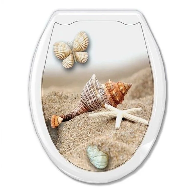 • Уникальный дизайн: изображение ракушки и бабочки создают атмосферу гармонии и природы, украшая интерьер вашего санузла и принося в него нотки морского бриза и лёгкости.