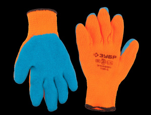 Утепленные, акриловые перчатки с рельефным латексным покрытием Зубр ЭКСПЕРТ 10 класс, сигнальный цвет, р.S-M 11465-S имеют обливку, которая защищает от воды, загрязнений и скольжения. Это позволяет работать с мокрыми и скользкими предметами.
