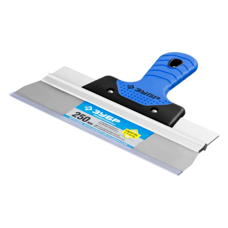 Шпатели необходимы при работах со шпаклевкой, герметиком и прочими растворами: металлические позволяют наносить и разравнивать различные строительные смеси, удаляются излишки составов и счищаются старые покрытия. Для выравнивания потолков строительный шпатель подходит лучше всего, также с его помощью производится укладка плитки