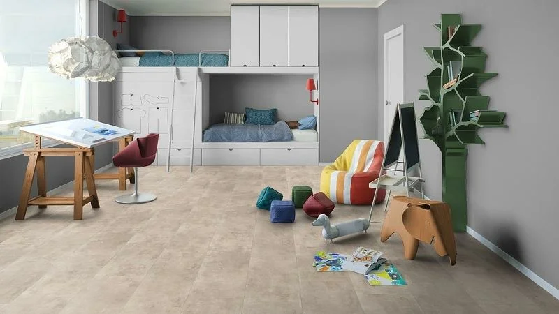 Модульная виниловая SPC плитка 31 класса в декоре Pale Beige, бежевого цвета с фаской по периметру для плавающего и клеевого способа укладки, толщиной 3,85 мм от российского производителя Tarkett. Дизайн выполнен под плитку. Напольное, каменно-полимерное SPC покрытие для пола Pale Beige (277026001) продаётся упаковками по 10 планок форматом 300×580 мм общей площадью 1,74 м². В качестве защитного слоя, дополнительно используется PU лак Standard толщиной 0,30 мм.