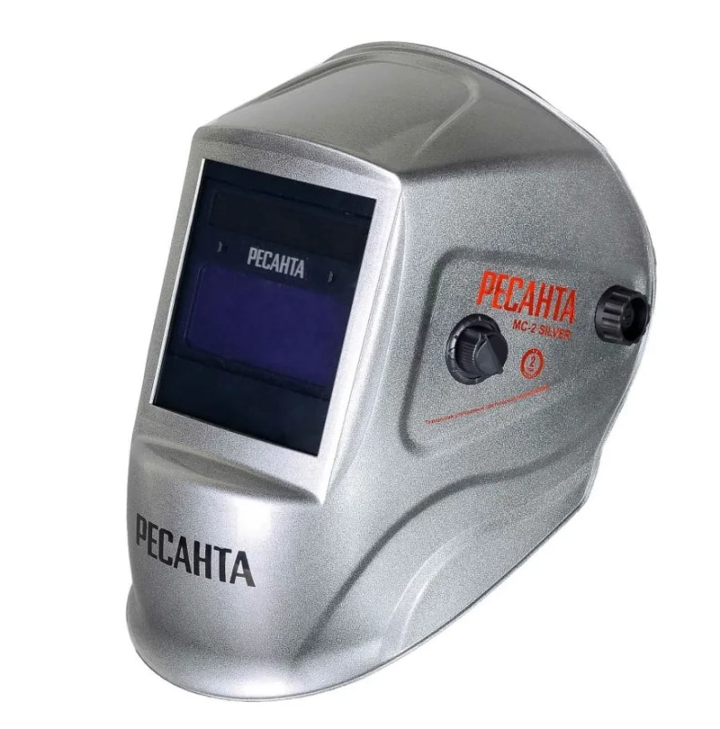 Сварочная маска Ресанта МС-2 Silver используется при проведении сварочных работ в быту, строительстве и на производстве. Смотровое окно размером 92х42 мм со светофильтром типа «хамелеон» защищает глаза от видимого, ультрафиолетового и инфракрасного излучения. Данный светофильтр представляет собой однослойный жидкокристаллический экран. Он отличается улучшенной цветопередачей, обеспечивает хороший обзор до начала работы и в процессе сварки. Благодаря наличию 2 датчиков происходит автоматическое затемнение при зажигании дуги. Его степень в темном состоянии варьируется от 9 до 13 DIN, настраивается с помощью регулятора. Это позволяет защитить глаза от ожога. В светлом состоянии показатель равен 4 DIN. Время переключения при температуре +20°С составляет 1,2 мс.