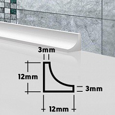 • Универсальность. Размеры плинтуса 12х12х1800мм идеально подходят для стандартных ванных комнат, а его вогнутая форма позволяет аккуратно скрывать малые неровности и стыки стен и пола.