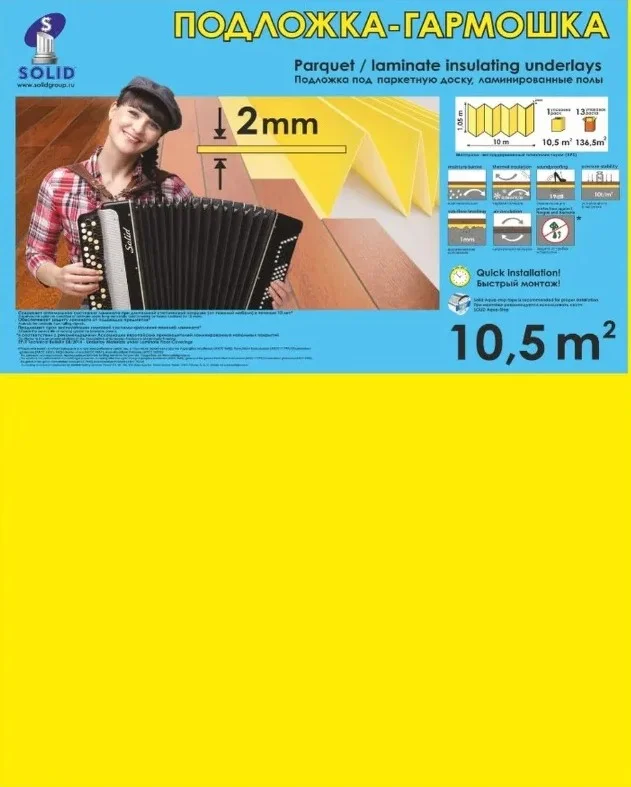 Подложка к ламинату ТМ Солид — это важный элемент укладки ламинатного покрытия, который не только улучшает технические характеристики напольного материала, но и продлевает срок его службы. Подложка от ТМ Солид разработана с учетом всех современных требований и возможностей, обеспечивая высокий уровень звукоизоляции и тепловой защиты вашего помещения.