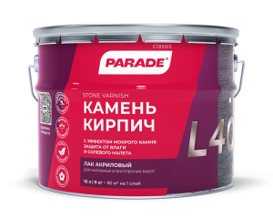 Высококачественный однокомпонентный акриловый лак на основе органических растворителей. Образует долговечное водо-, грязеотталкивающее прочное покрытие, стойкое к эксплуатационным нагрузкам и истиранию. Надежно укрепляет, защищает камень, кирпич, бетон от агрессивного воздействия атмосферных воздействий, перепадов температур, влаги. Препятствует образованию микротрещин, солевого налета, коррозии. Создает на поверхности прозрачную эластичную пленку с высокими декоративными свойствами, сохраняет естественный цвет кирпича и камня, придает поверхностям эффект «мокрого камня».