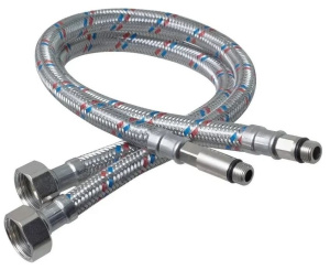 Гибкая подводка представляет собой резиновый шланг с гайкой и штуцером на концах, защищенный оплеткой из нержавеющей стали. Предназначена для подключения смесителя к магистрали водоснабжения. Оснащена стандартной латунной гайкой 1/2'' и штуцером М10.