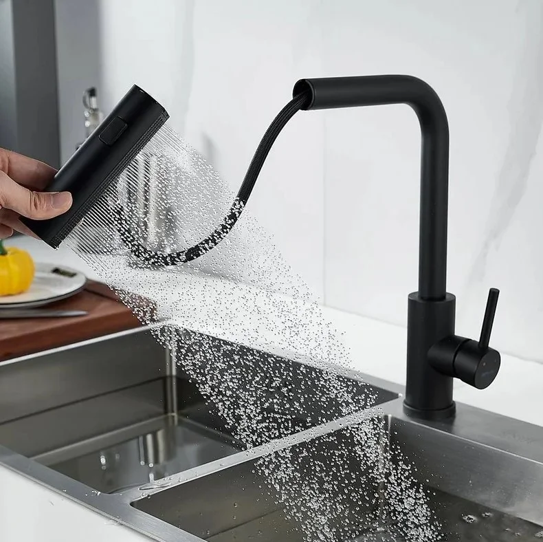 Одним из ключевых преимуществ данного смесителя является съемный выдвижной поворотный излив, который можно легко снять и повернуть в любую сторону. Излив предлагает 3 различных режима подачи воды: стандартный режим подходит для повседневного использования, турбо-струя идеальна для удаления сложных загрязнений, а режим широкой струи с мягким напором идеально подходит для быстрой очистки больших поверхностей, например, кухонной посуды с большим диаметром и разделочных досок.