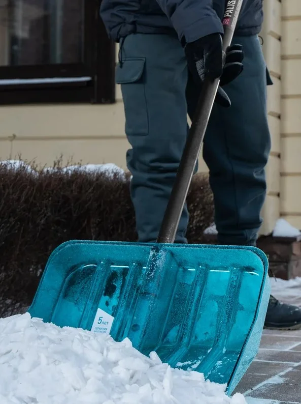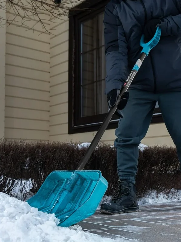Благодаря заостренной кромке ковша лопата справляется даже с плотным снегом и наледью.