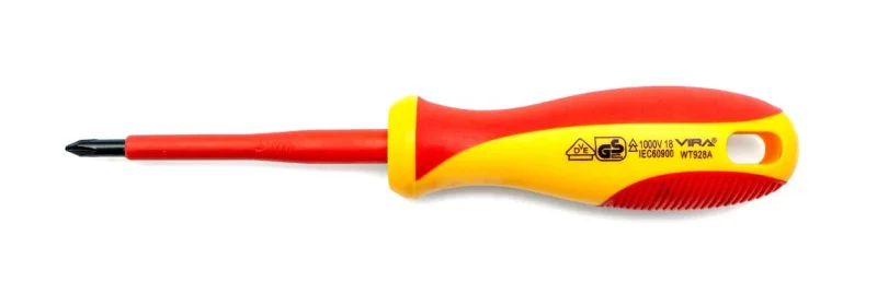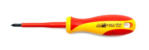 Стержень изготовлен из высококачественной легированной стали устойчивой к износу и истиранию с намагниченным наконечником. Геометрия жала соответствует промышленным стандартам. Стержень имеет диэлектрическое покрытие, двухкомпонентная рукоятка выполнена также из пластика PP, что гарантирует защиту от напряжения до 1000В, а вставки из упругой резины TPE делает ручку мягкой для вашей ладони и обладает антискользящим эффектом.