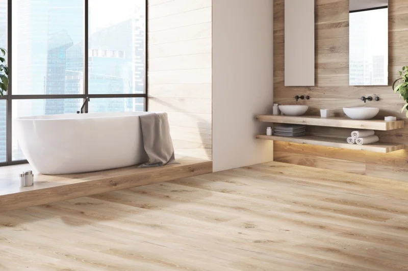 Плитка ПВХ устойчива к влаге, что делает ее идеальной для использования в помещениях с повышенной влажностью, таких как кухни и ванные комнаты.