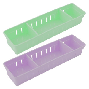 Органайзер предназначен для хранения и переноса канцелярских принадлежностей, косметики, изделий для рукоделия, кухонных принадлежностей, а также других предметов домашнего обихода. Благодаря двум разделителям, входящим в комплект, вы сможете сделать отделения органайзера нужного вам размера. Органайзер поможет организовать пространство. Разместите органайзер на полке, в выдвижном ящике тумбы или шкафа и нужные вещи всегда будут в порядке и под рукой.
