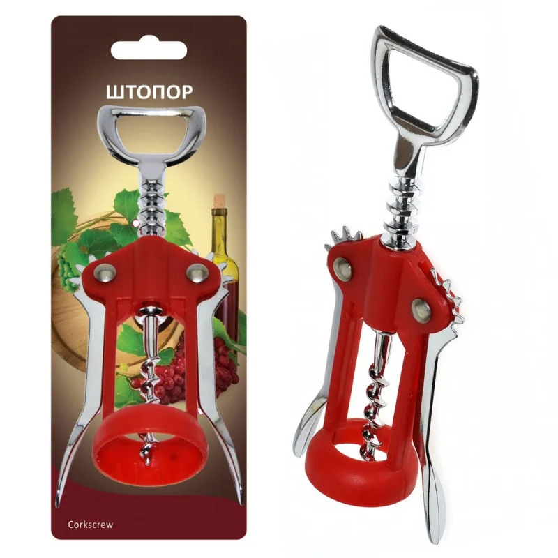Штопор имеет рычажный механизм с «крыльями», который позволяет легко без усилий открыть любую бутылку. Ручка штопора имеет специальную конструкцию, позволяющую легко, без усилий открыть любую бутылку.