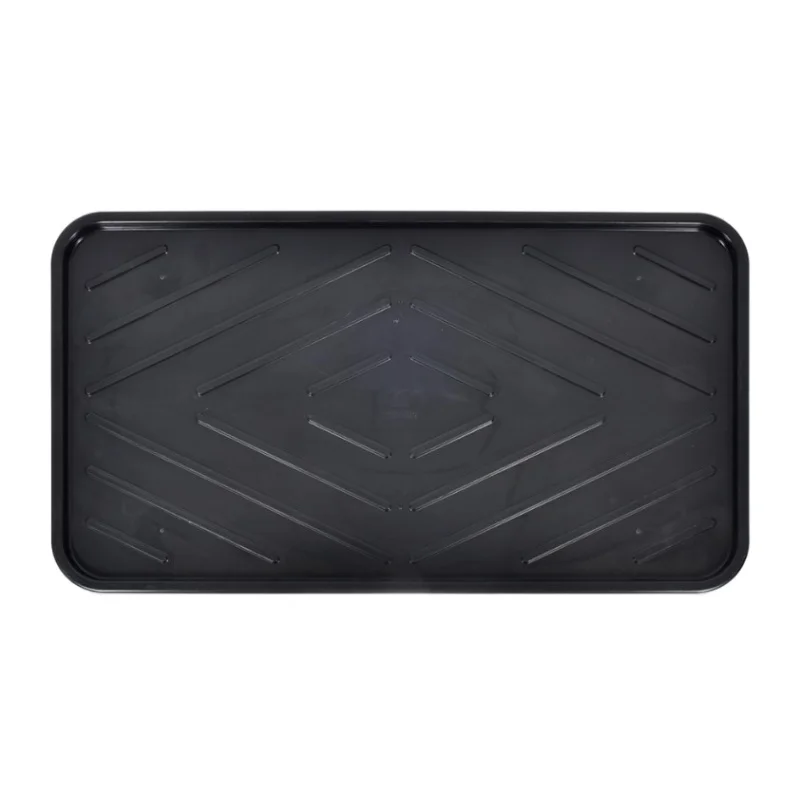 Лоток для обуви — это аксессуар, который подходит для упорядочивания обуви в прихожей, сохраняя порядок и чистоту. Широкая поверхность позволяет разместить несколько пар обуви, а благодаря небольшим бортикам вся грязь и влага остаются внутри, защищая пол от загрязнений. Черный цвет лотка придает ему универсальный вид.