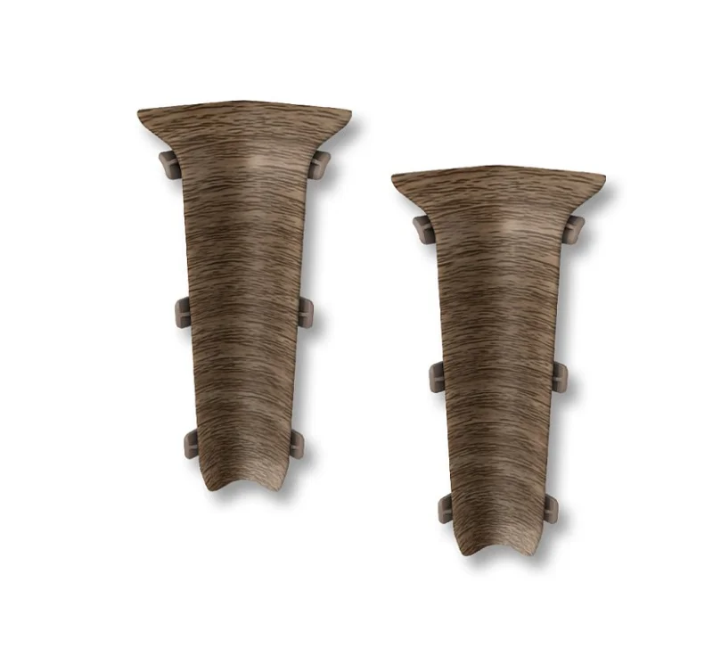 Внутренний уголок устанавливается на стыке двух отрезков напольного плинтуса, которые соединяются в углу комнаты. Он выбирается в зависимости от цвета и размеров плинтуса.