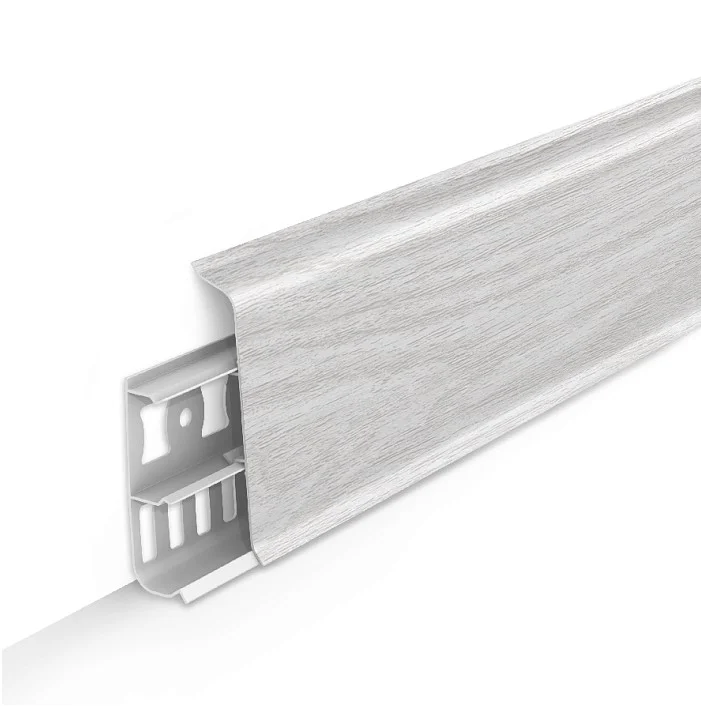 Плинтус Лексида 80мм предназначен для декоративного оформления и укладки по краям комнаты между стеной и полом. Плинтус имеет две части: одна фиксируется на стене, а другая, выполненная с элементами декора, крепится сверху с помощью специальных клипс.