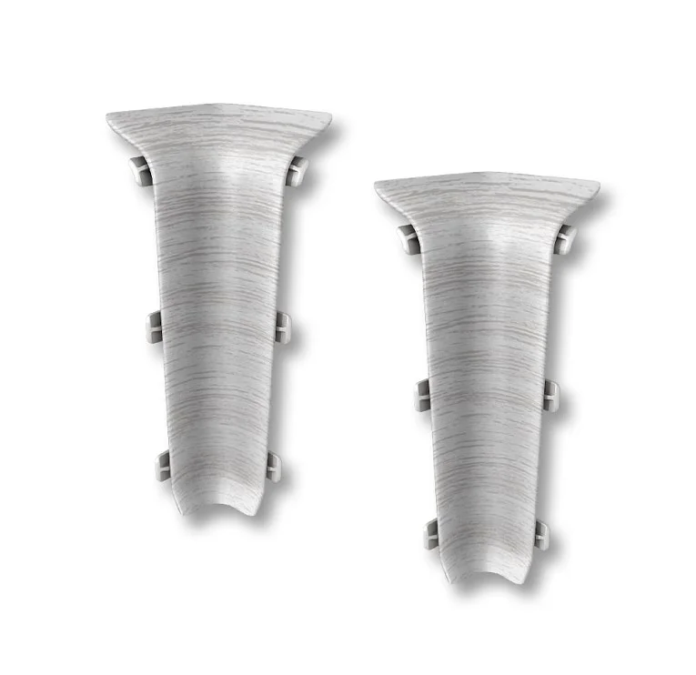 Внутренний уголок устанавливается на стыке двух отрезков напольного плинтуса, которые соединяются в углу комнаты. Он выбирается в зависимости от цвета и размеров плинтуса.