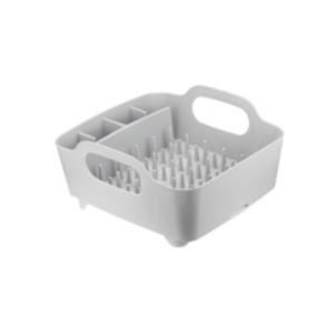 Настольная сушилка для посуды ИЗЛИ — крепкий и удобный в использовании аксессуар, который вместит в себя всё необходимое. Её удобно расположить рядом с раковиной и складывать в неё всю вымытую посуду. В сушилке для посуды предусмотрено отверстие для слива воды, которое можно направить сразу в мойку. Благодаря наклонной поверхности вода сама вытекает из неё. В ней можно не только сушить, но и аккуратно хранить посуду и кухонные принадлежности. Удобные ручки позволяют с лёгкостью перемещать сушилку. Сушилка ИЗЛИ станет отличным решением на даче. Приятные цвета: белый и смоки — отлично впишутся в интерьер кухни. Можно мыть в посудомоечной машине.