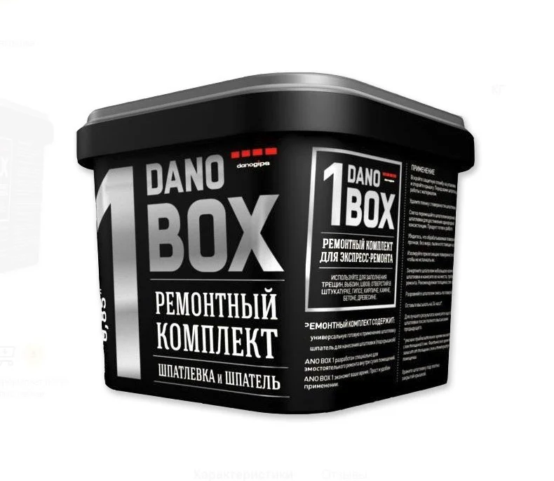 DANO BOX 1 разработан специально для самостоятельного ремонта внутри сухих помещений. Преимущества Готовый набор из полимерной шпатлевки и шпателя. Идеально подходит для быстрого ремонта в доме. Подходит для любых минеральных оснований.