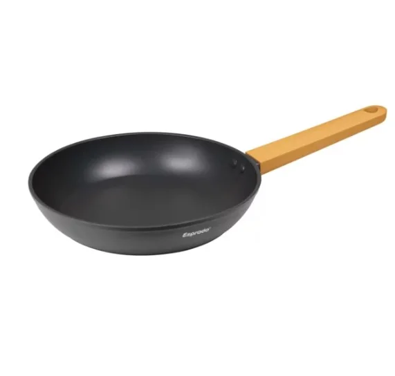 Сковорода из кованого алюминия. Коллекция Apricot. Размер:24 см X4.6 см. Толщина обода 4.2 мм. Толщина стенок: 1.6 мм. Толщина дня: 3.2 мм. Дно: индукционное с отверстиями с лого. Размер индукционного диска: 130мм. Внутреннее покрытие – Pfluon ® Cookmark (2 слоя). цвет: Pantone матовое 7540C. Обод окрашен в цвет внутреннего покрытия: Pantone матовое 7540C. Алюминиевые заклёпки окрашены в цвет внутреннего покрытия: Pantone матовое 7540C . Снаружи термостойкое покрытие. цвет: Pantone матовое 7540C. Лазерная гравировка логотипа на боковой стенке изделия. Ручка – бакелитовая с покрытием soft touch c лого. цвет: Pantone 7508C. Пламегаситель из нержавеющей стали Pantone матовое 7540C.
