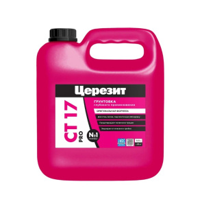 Грунтовка CT 17 предназначена для обработки впитывающих оснований перед креплением керамических и каменных плиток, нанесением штукатурок, напольных выравнивающих смесей и т.д. внутри и снаружи зданий. Обладает высокой проникающей способностью, повышает поверхностную прочность, снижает впитывающую способность основания, связывает остаточную пыль, предотвращает пересыхание растворных смесей в тонком слое, повышает адгезию материалов к основанию, повышает растекаемость нивелирующих смесей и предотвращает появление пузырьков воздуха на выравнивающем слое. Применяется для обработки бетона, цементно-песчаных стяжек (в т.ч. с подогревом), цементных, цементно-известковых и известковых штукатурок, легкого и ячеистого бетона, ангидритных стяжек, гипсовых штукатурок, ДСП, ДВП, гипсокартона, цементностружечных плит, кладок из керамического и силикатного кирпича, природного камня и т.д.