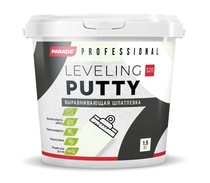 Шпатлевка акриловая PROFESSIONAL S20 базовая 1,5 кг Россия PARADE Лк-00011761 - высококачественная акриловая шпатлёвка для стен и потолков. Готова к употреблению. Используется для внутренних работ по минеральным поверхностям при отделке под окраску и оклейку обоями. Позволяет скрыть трещины, выбоины и другие дефекты поверхности, рекомендуется для сплошного шпатлевания. Имеет хорошую адгезию к бетону, кирпичу, штукатурке, гипсокартону, фанере, ДСП. Идеальна для заделки стыков гипсокартона.