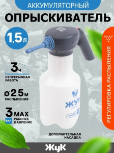 Аккумуляторный опрыскиватель Жук Эксперт ОА-1 (1,5 л) — идеальный помощник для эффективного распыления различных жидкостей: воды, гербицидов, пестицидов и удобрений. Компактный и мощный, он оснащен встроенным аккумулятором, который обеспечивает до 3 часов непрерывной работы.