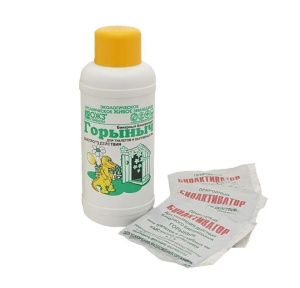 "Жидкость + порошок, флакон. Бинарный (двухкомпонентный) биопрепарат быстрого действия для туалетов и выгребных ям. Содержит ассоциацию микроорганизмов и биокатализаторы, способные высвобождать ферменты, расщепляющие отходы. Эффективно разлагает и разжижает органику, фекалии, жиры, бумагу. Устраняет неприятные запахи разложения органических продуктов жизнедеятельности. Снижает затраты по откачке, очистке выгребных ям. Переработанные отходы экологически безопасны. Вносите их в компостную кучу. Безопасен для людей, животных, растений.