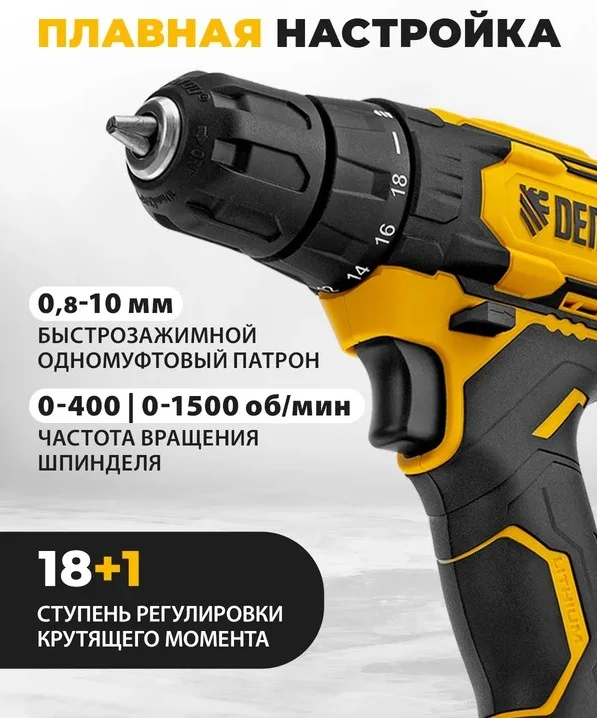 18+1 ступень регулировки крутящего момента — можно выбрать наиболее подходящий режим в зависимости от типа крепежа и плотности материала