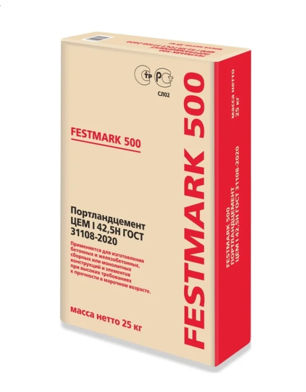 ЦЕМ I 42,5Н – портландцемент бездобавочный, класс по прочности 42,5 нормальнотвердеющий по ГОСТ 31108-2020.