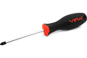 Отвертка RAGE by VIRA PH2x100. Отвертки RAGE by VIRA изготовлены из хром-ванадия. Твердость 48-52 HRC. Отвертка в два раза превосходит международный стандарт DIN по показателю предельного крутящего момента. Все отвертки серии имеют магнитный наконечник – мелкий крепеж, детали будет удобнее вворачивать или извлекать, сложнее потерять. Мы привели геометрию жала отвертки в соответствие с промышленным стандартом – оно без люфта помещается в шлице крепежа, благодаря точной обработке углов наконечника. Работая нашей отверткой, Вы не только сбережете шлиц шурупа, но и надолго сохраните сам инструмент, снизите усилия на вращение. Отверстие в рукоятке можно использовать для подвешивания отвертки на стенде, а можно вставить в него вороток для дополнительного усиления крутящего момента. Мы называем рукоятку отвертки RAGE by VIRA анатомической, потому что она имеет сглаженную трехгранную форму, которая удобно обхватывается рукой, а большой палец естественным образом вкладывается в одно из углублений. Все перечисленные особенности ручки дают возможность создавать больший крутящий момент при меньших усилиях с вашей стороны. Рукоятки отверток выполнены из прочного пластика и упругой резины TPR. Такое сочетание материалов делает ручку крепкой, но мягкой для вашей ладони. Никаких царапающих швов и резких граней. Резиновое покрытие обладает антискользящим эффектом. Размер шлица: PH2, длина стержня 100 мм.