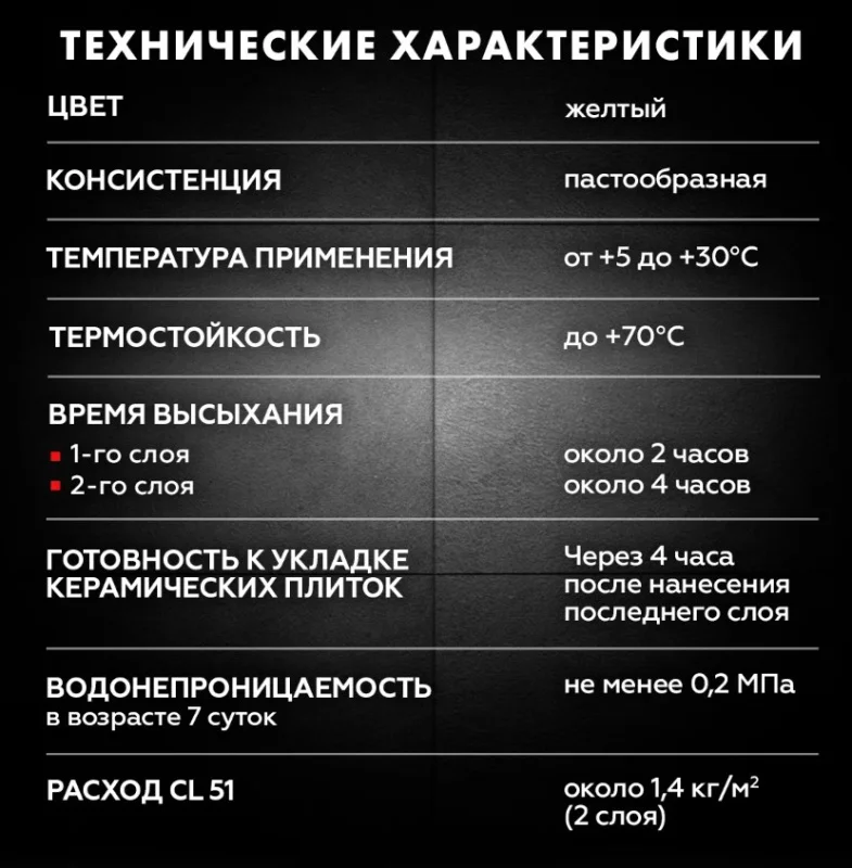 Гидроизоляционная масса CL 51 предназначена для устройства эластичных водонепроницаемых покрытий перед устройством плиточных облицовок в помещениях, подверженных периодическому увлажнению (ванных, душевых, туалетах, кухнях и т.д.).