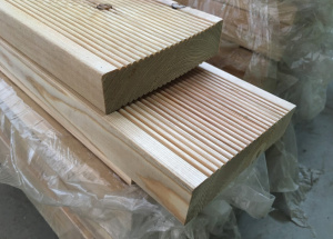 Террасная доска, еще ее называют вельвет, изготавливается особым образом, лицевая поверхность ее имеет небольшое рифление, благодаря этому по ней очень приятно ходить не боясь подскользнуться. С тыльной стороны она имеет продольные пропилы, они выполняют роль воздуховодов, которые предохраняют настил от накопления конденсата, благодаря этому исключается возможность набухания и деформации древесины. Вельвет предназначен для устройства дощатого настила на открытых площадках, обычно ее применяют на верандах, садовых дорожках и пр.
