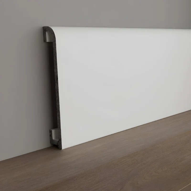 Плинтус DPM Stella – элегантное и практичное решение для оформления стыков стен и пола. Изготовлен из прочного дюрополимера, который превосходит полистирол по плотности и долговечности.