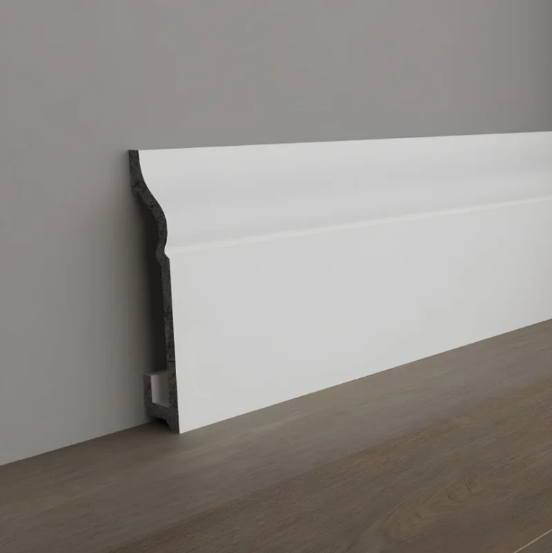 Плинтус DPM Stella – элегантное и практичное решение для оформления стыков стен и пола. Изготовлен из прочного дюрополимера, который превосходит полистирол по плотности и долговечности.
