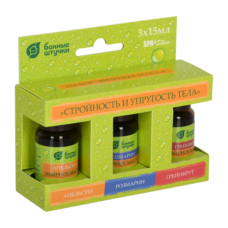 АПЕЛЬСИН -Повышает настроение, способствует снятию напряжения, улучшает работоспособность. Применение в косметических целях способствует активации востановительных процессов кожных покровов, помогает при борьбе с целлюлитом. ГРЕЙПФРУТ - Улучшает настроение, способствует повышению умственной активности. Применение в косметических целях препядствует угревой сыпи, помогает при борьбе с целлюлитом. РОЗМАРИН - Укрепляет и активизирует нервную систему, снимает физическую и умственную усталость