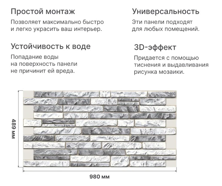 Панель изготовлена из ПВХ высшего качества, обладает минимальной толщиной и максимальной долговечностью. Идеально подходит для отделки кухни и ванной комнаты.