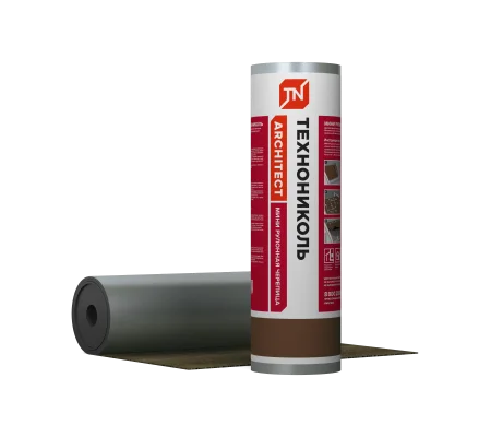 Декоративный рулонный кровельный самоклеящийся битумно-полимерный материал. МИНИ Рулонную черепицу ТЕХНОНИКОЛЬ получают путем пропитки прочной основы из армированного стеклохолста битумно-полимерным вяжущим, с последующим нанесением на нижнюю сторону полотна самоклеящегося слоя. В качестве защитных покрытий применяют с лицевой стороны цветную базальтовую крупнозернистую посыпку, с нижней стороны полотна антиадгезионную полимерную пленку.,