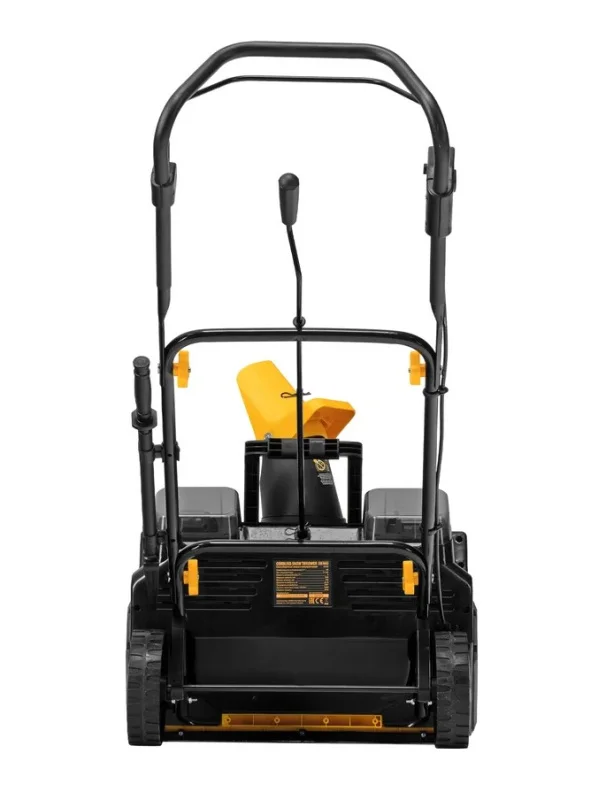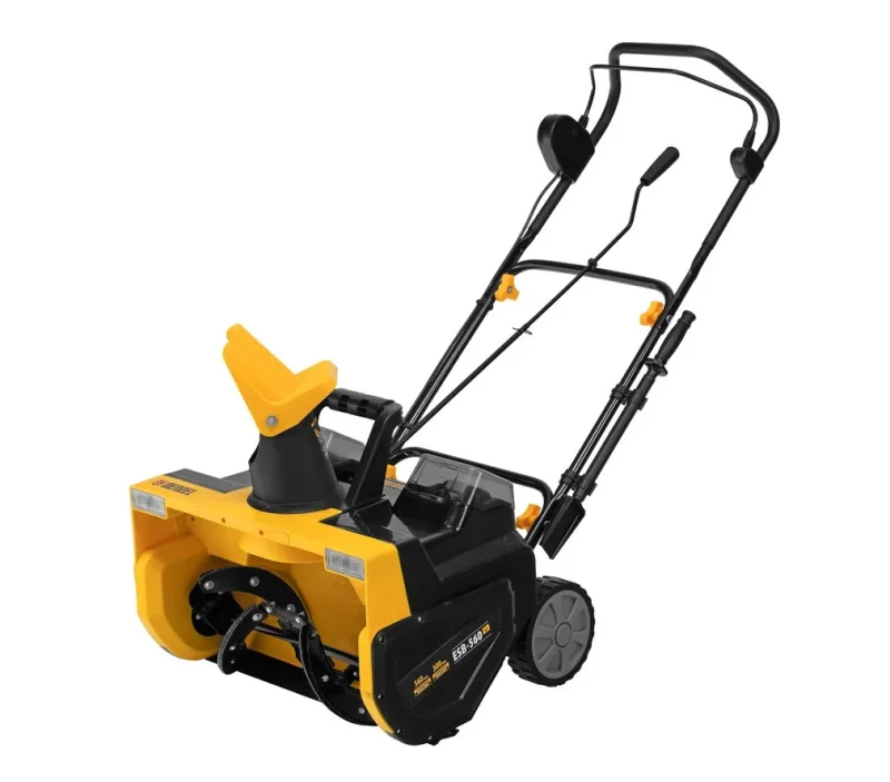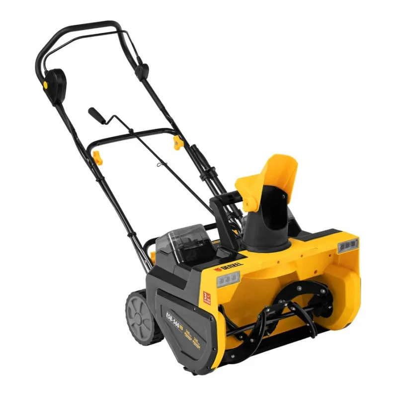 Аккумуляторная снегоуборочная машина Denzel ESB-560Li 97639 с металлическим шнеком и зарядным устройством (ЗУ) в комплекте работает от 2 аккумуляторов 5 А·ч суммарным напряжением 40 В и обеспечивает ширину захвата 560 мм.