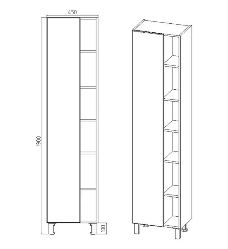 Габариты (ШхВхГ): 450х1900х300 мм.