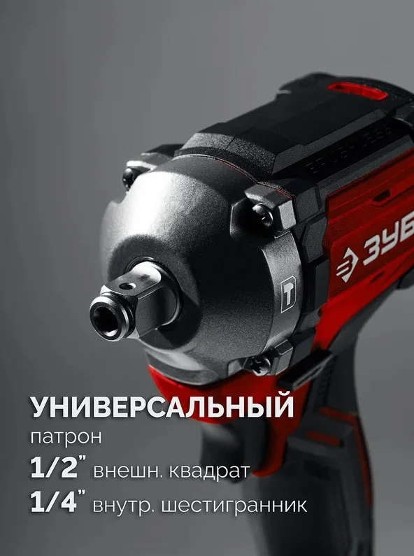 Применяется для закручивания/откручивания крепежных элементов при сборке/разборке металлических конструкций, снятии/установке колес автомобиля и т.д. при установке соответствующего расходного инструмента. Универсальный патрон с квадратным хвостовиком 1/2'' и внутренним HEX 1/4'' позволяет устанавливать стандартный сменный инструмент без переходников