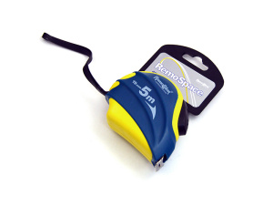Корпус из ABS-пластика с резиновыми вставками, стойкая к излому усиленная стальная лента с матовым порошковым покрытием, механизм возврата с «автостопом», встроенный амортизатор, подвижный зацеп.