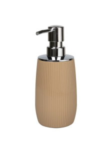 Дозатор настольный для ванной комнаты цилиндрической формы. Предназначен для порционной подачи мыла, шампуней и других гелеобразных жидкостей. Изготовлен из пластика. Подача моющего средства осуществляется с помощью пластиковой помпы. Влагоустойчив.
