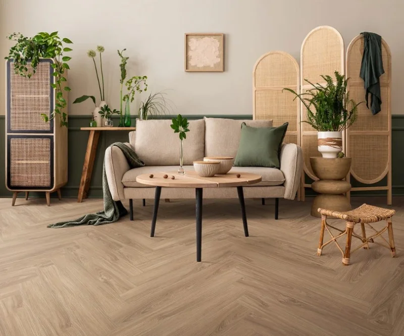 Коллекция ANGLETERRE — это первая коллекция ламината Tarkett с форматом укладки «Английская ёлка». Притягательной особенностью данной коллекции является уникальный формат укладки. В этом способе укладки более короткая сторона одной планки соединяется с более длинной стороной другой планки под прямым углом.